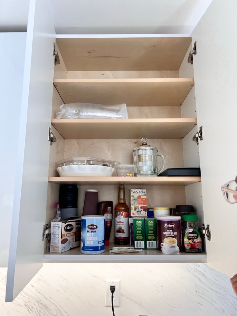 Here’s the organizing win: when everything your guest needs is already out on the counter, they won’t have to open cabinets or wonder where anything is. And you don’t have to worry if what’s behind those doors isn’t exactly photo-ready. No one’s judging your mug collection or mystery Tupperware drawer—they’re just grateful the coffee is easy to find. Comfort for them. Peace of mind for you.
