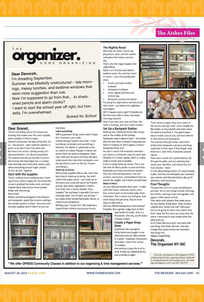 Before everything disappears into drawers and backpacks, spend five minutes putting a few simple systems in place – because even the best supplies won’t help if no one can find them.