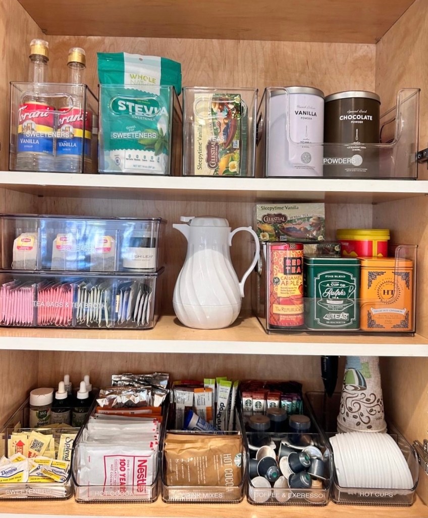 Use whatever setup works best – turntable, drawer insert, or a few labeled bins. The goal is simple: one-stop caffeination. Everything you need, right where you need it.