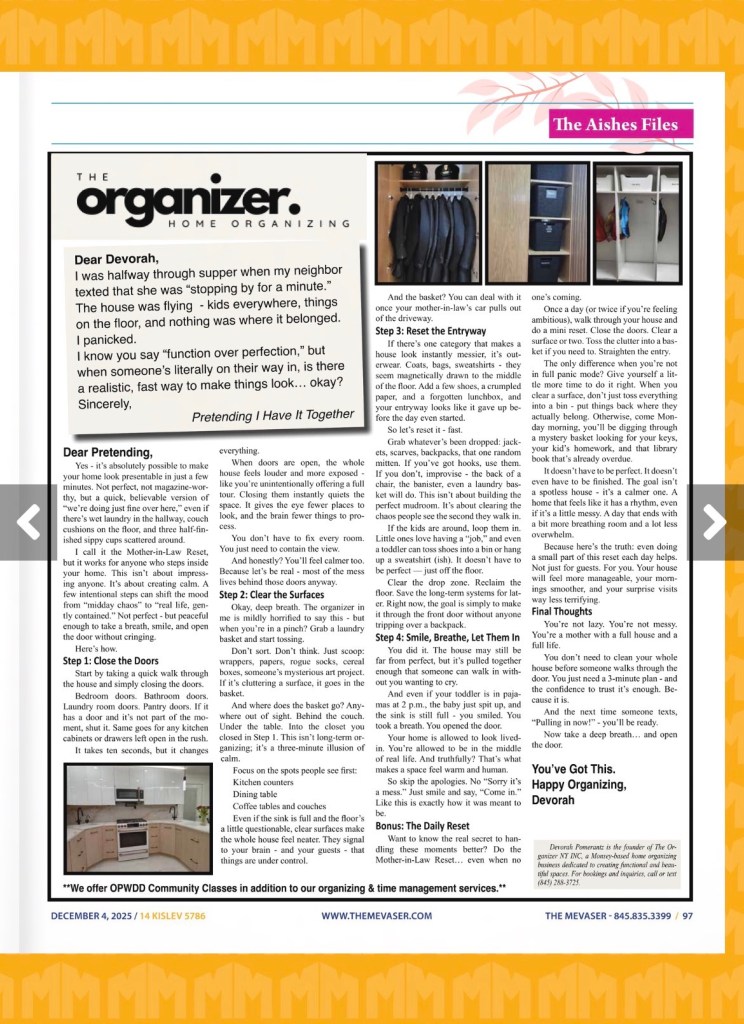 I know you say “function over perfection,” but when someone’s literally on their way in, is there a realistic, fast way to make things look… okay?