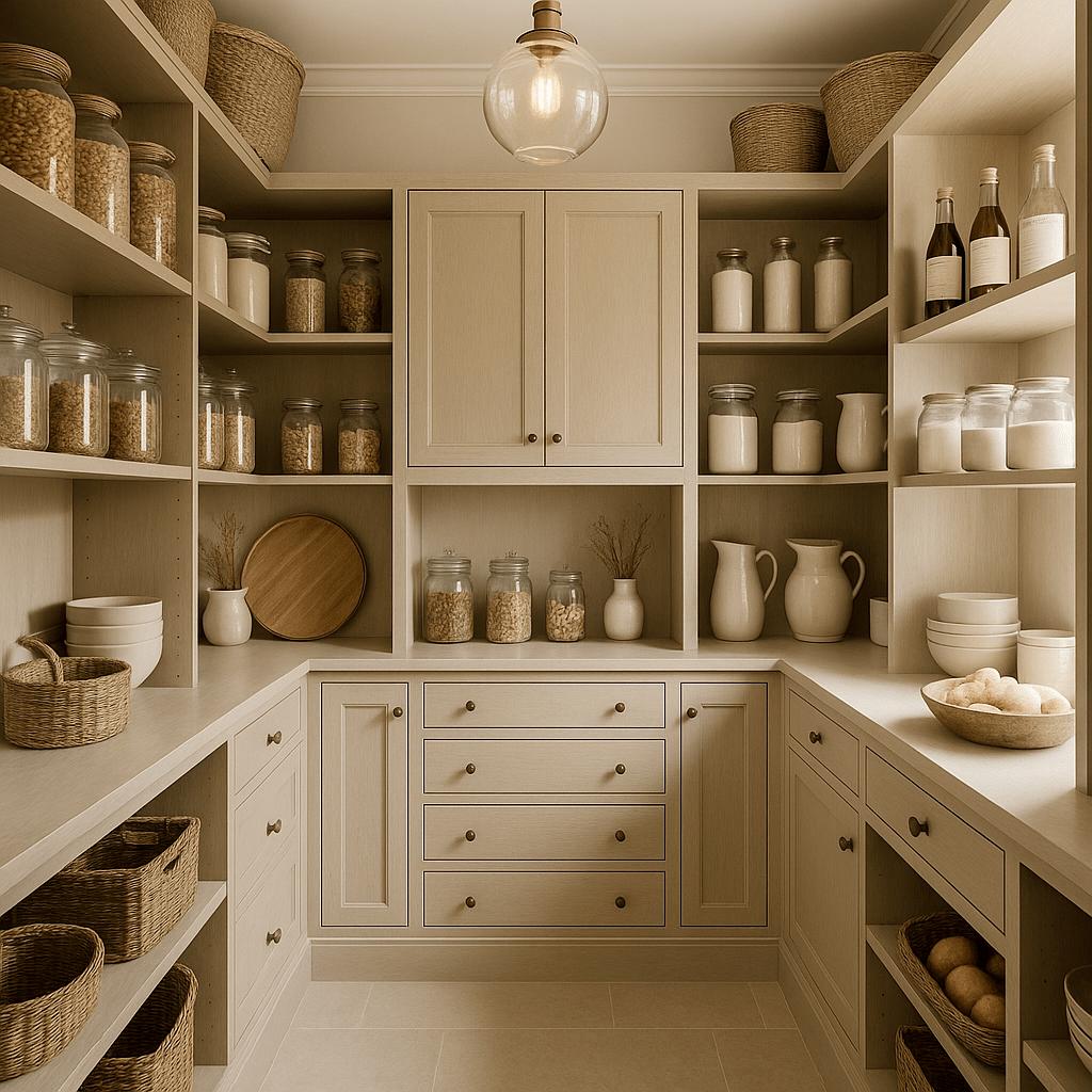 I’ll look for things like pantry doors that are completely empty while shelves are overflowing, under-sink cabinets full of wasted space, or closets that rely only on shelves and ignore walls. In those cases, the solution usually isn’t adding more – it’s using what’s already there more intentionally.