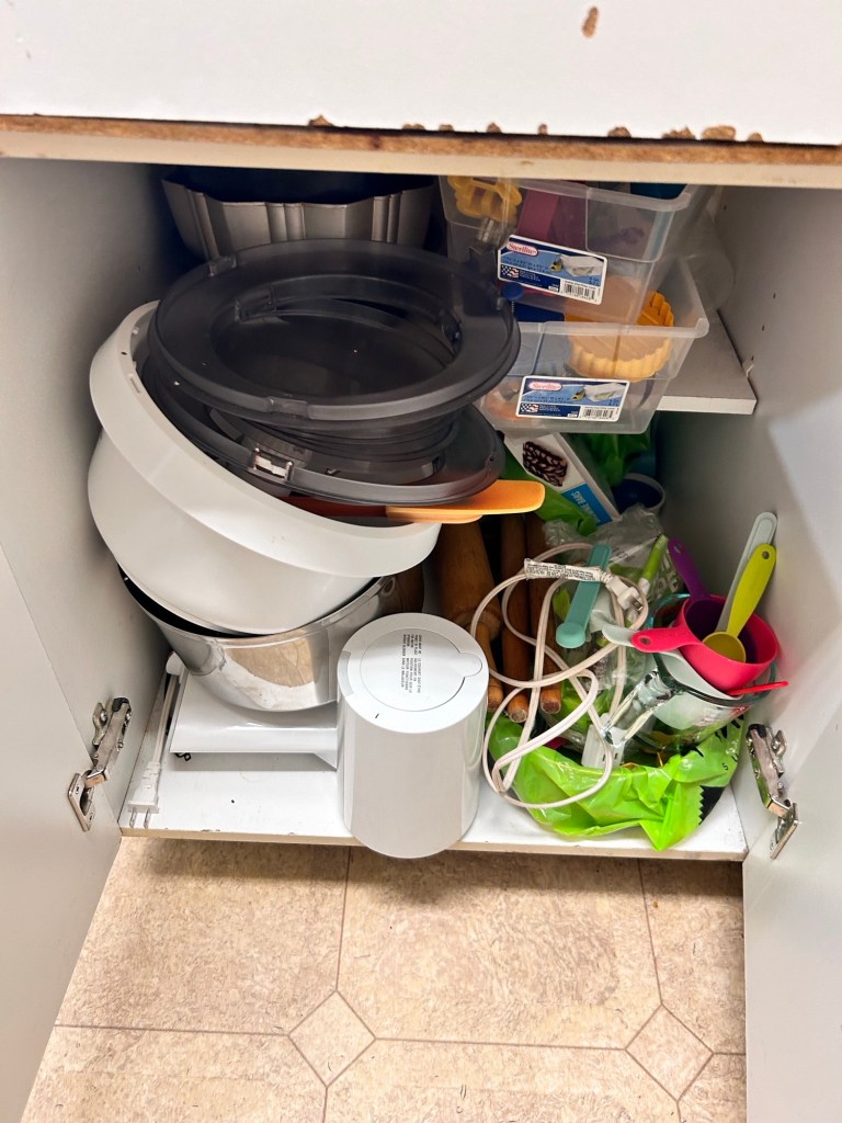 Sometimes a bin is exactly what’s needed. Sometimes it’s adjusting shelves so items actually fit instead of being stacked awkwardly. Sometimes it’s using vertical space that’s been ignored for years. And sometimes, it’s recognizing that something doesn’t belong in this space at all.