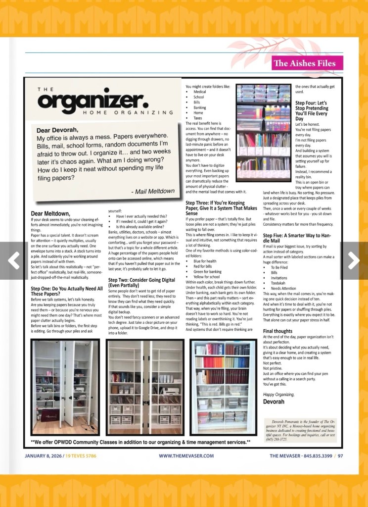 My office is always a mess. Papers everywhere. Bills, mail, school forms, random documents I’m afraid to throw out. I organize it… and two weeks later it’s chaos again. What am I doing wrong? How do I keep it neat without spending my life filing papers?